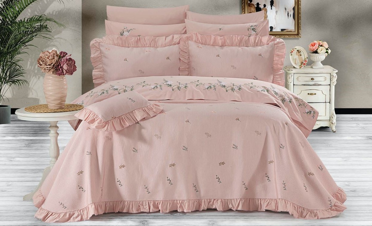 10 Parça Dio Nakışlı Gelin Seti – Pembe